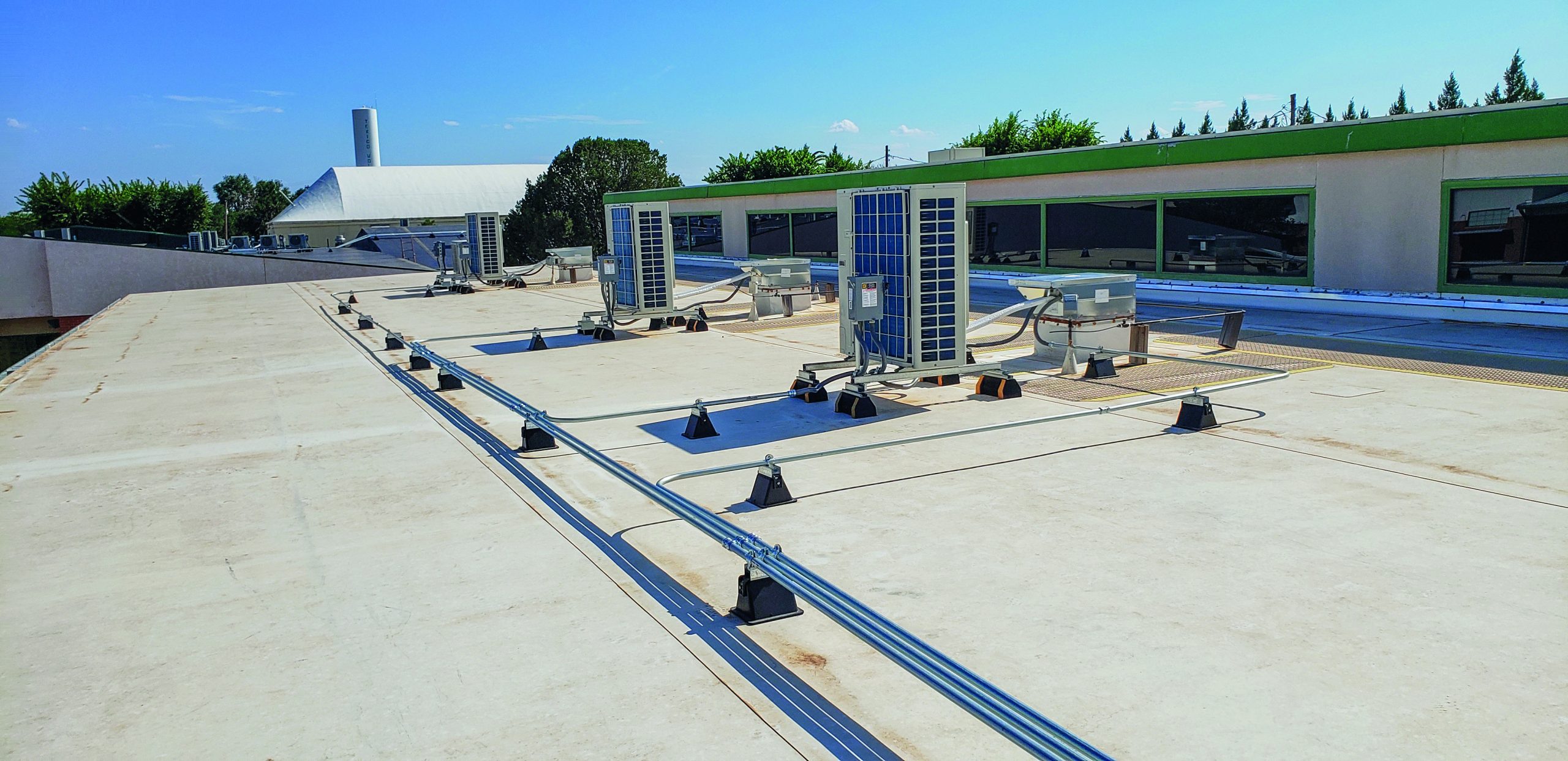 Replaced 66 swamp coolers with new high-efficiency DX heat pumps to provide reliable mechanical cooling, reduce energy use, and improve student comfort year-round.